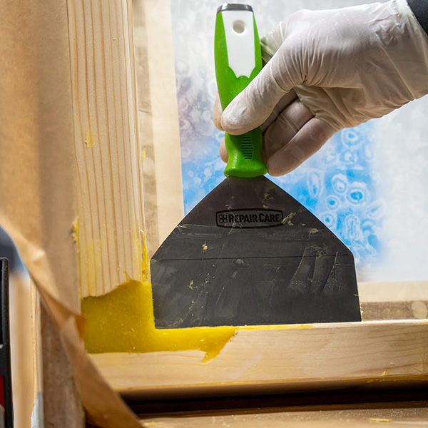 Repair Care Dry Flex 16 is a flexible repair compound for both emergency and permanent repairs on interior and exterior wood surfaces, such as windows, doors, stairs, furniture, fascias and soffits. Ideal for larger repairs with a thickness level of 5-50mm. Once set, it has excellent mechanical features, naturally moving like wood. It can be sanded and finished to match the surrounding area. Easy to use.